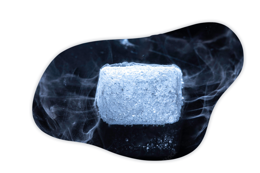 Suchy lód zestalony dwutlenek węgla o temperaturze -78,5 °C. W procesie technologicznym z użyciem pras hydraulicznych powstaje produkt, który formuje się w plastry, bloki czy granulat. Najpopularniejszą formą jest właśnie granulat o średnicy fi16mm, który znajduje zastosowanie w wielu branżach.
